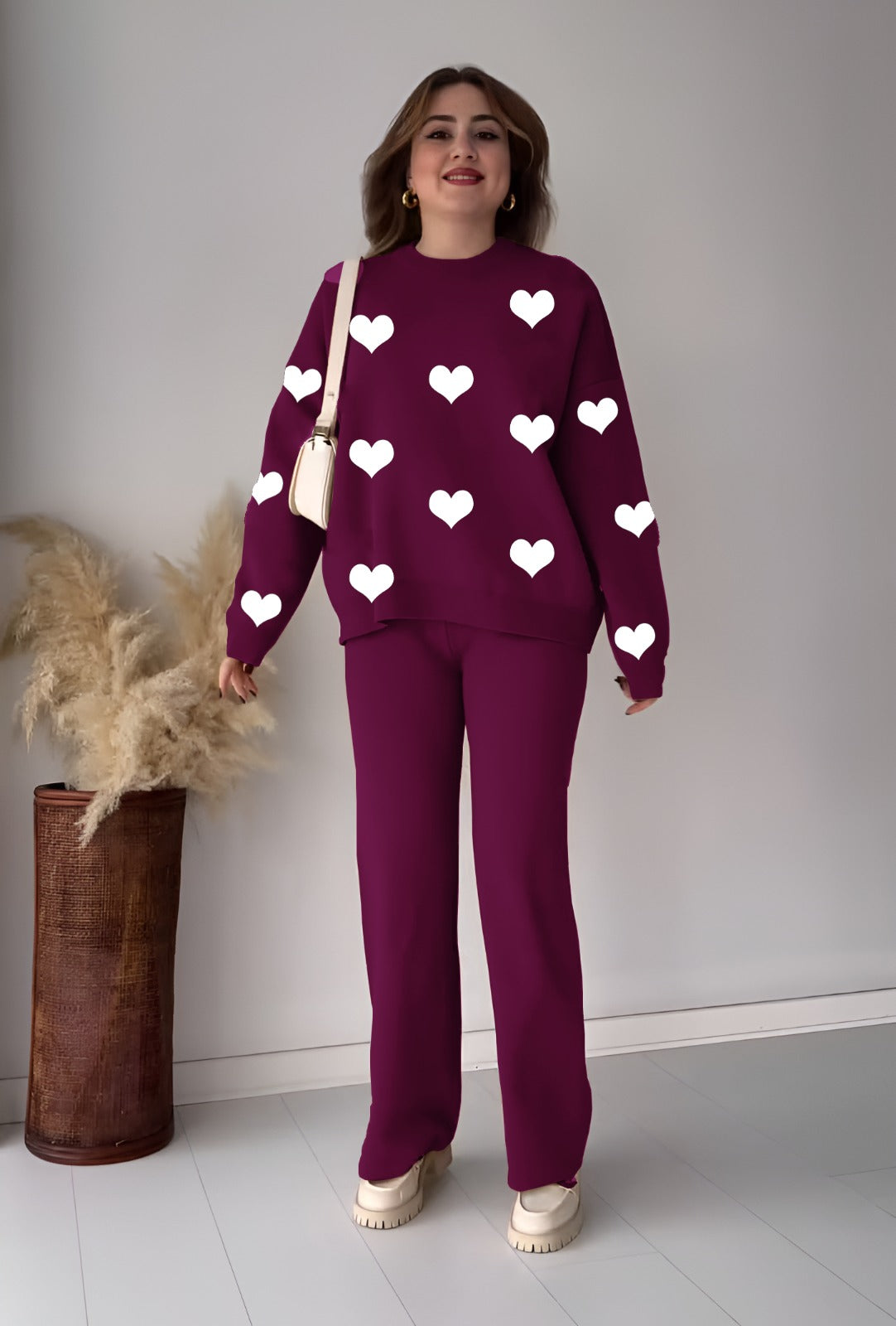 Heart Printed Sweat Shirts Trouser For Girls & WomensÂ